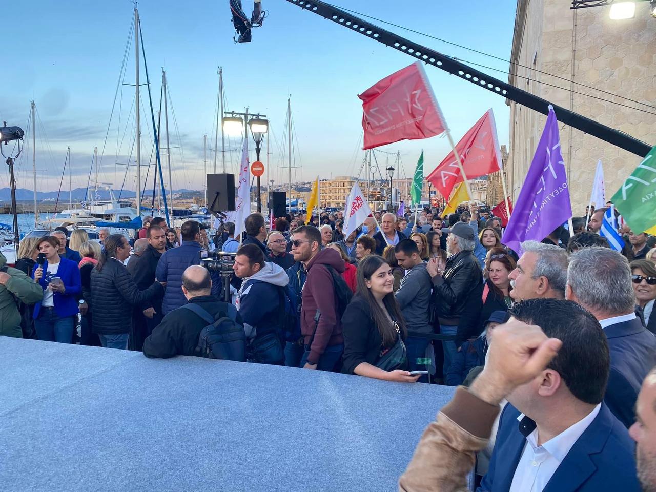 «Σας φέρνω λοιπόν ένα μήνυμα από κάθε άκρη της Ελλάδας. Στις 21 Μαΐου θα κάνει ξαστεριά. Και την επομένη θα ξημερώσει μια νέα μέρα για τη δημοκρατία, τη δικαιοσύνη, την πατρίδα μας. Έρχεται η ξαστεριά της αλλαγής», είπε χαρακτηριστικά, ενώ εξέφρασε «χαρά και συγκίνηση» που βρίσκεται στην Κρήτη, γιατί «η Κρήτη είναι στο σώμα και το αίμα της ιστορίας μας», όπως είπε.