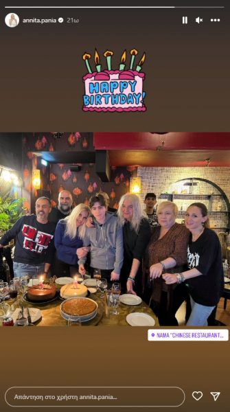 Στο ίδιο στιγμιότυπο διακρίνουμε και τον καλό φίλο της Αννίτας, Μπάμπη Στόκα, αλλά και αρκετούς ακόμα καλούς της φίλους, τους οποίους θεωρεί οικογένεια.