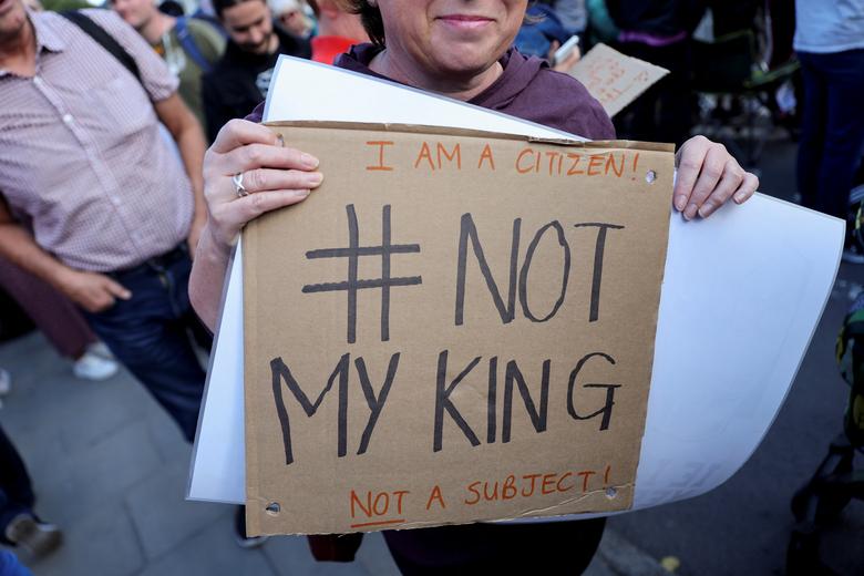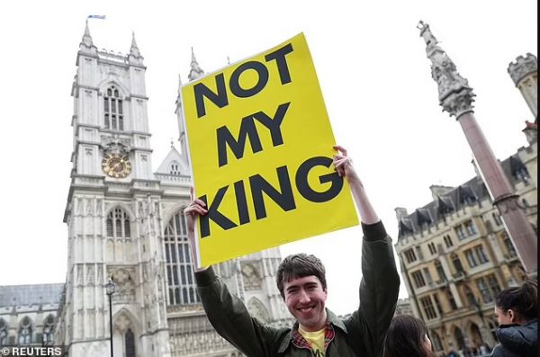 Οι διαδηλώσεις κατά της μοναρχίας προσελκύουν μικρό αριθμό ανθρώπων, καθώς η πλειοψηφία των Βρετανών εξακολουθεί να επιθυμεί να υπάρχει η βασιλική οικογένεια.