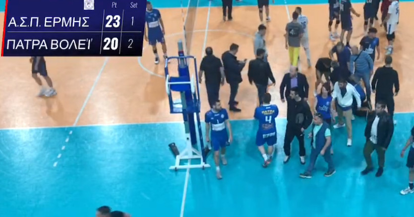 Απίστευτες εικόνες σημειώθηκαν σε ελληνικό γήπεδο, αφού ο τελευταίος τελικός για το πρωτάθλημα της Β’ Εθνικής στο βόλεϊ ανδρών, ανάμεσα στον Ερμή Πατρών και την Πάτρα Βόλεϊ μετετράπηκε σε… ρινγκ.