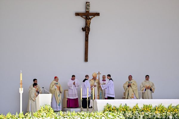 Μετά τη θεία λειτουργία, ο πάπας απευθύνθηκε στο συγκεντρωμένο πλήθος, όπως συνηθίζει, και αναφέρθηκε στον πόλεμο στην Ουκρανία, που βρίσκεται στο ανατολικό σύνορο της Ουγγαρίας. Προσευχήθηκε εξάλλου για το καλό τόσο του ουκρανικού όσο και του ρωσικού λαού.