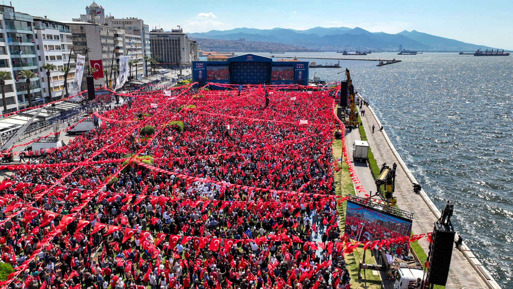 «Η λεκάνη της Μεσογείου θερμαίνεται λόγω της κλιματικής αλλαγής και οι δασικές πυρκαγιές αυξάνονται. Ο κύριος έχει 16 αεροπλάνα. Θα πουλήσουμε αυτά τα αεροπλάνα και θα αγοράσουμε πυροσβεστικά αεροσκάφη», υποσχέθηκε σήμερα στην ομιλία του στη Σμύρνη ο υποψήφιος της 6κομματικής αντιπολίτευσης, καταχειροκροτούμενος από τους εκατοντάδες Τούρκους που έβαψαν κόκκινους τους δρόμους της πόλης.