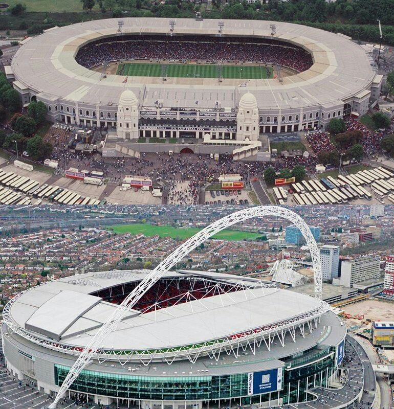 Διάσημο για τους δύο πύργους του και τα 139 σκαλοπάτια που χρειάζονταν οι παίκτες για να ανέβουν στη Βασιλική Σουίτα και να παραλάβουν τα μετάλλια τους, το παλιό Γουέμπλεϊ παρέδωσε τη σκυτάλη στο νέο που χτίστηκε πάνω στην ιστορία του αυθεντικού, το 2007. Αυτή τη φορά ωστόσο δεν υπήρχαν ούτε πύργοι, ούτε σκαλοπάτια. Το νέο οικόσημο είναι η ατσάλινη αψίδα των 134 μέτρων που αγκαλιάζει το στάδιο, σήμα κατατεθέν της νέας εποχής. Ο μύθος ωστόσο παρέμεινε αναλλοίωτος και εξακολουθεί να ζει στα θεμέλιά του.
