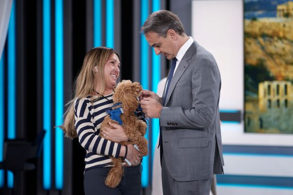 Ωστόσο, τις εντυπώσεις έκλεψε ένα σκυλάκι, που, όπως φαίνεται και στις φωτογραφίες αντάλλαξε αγκαλιές με τον Κυριάκο Μητσοτάκη.