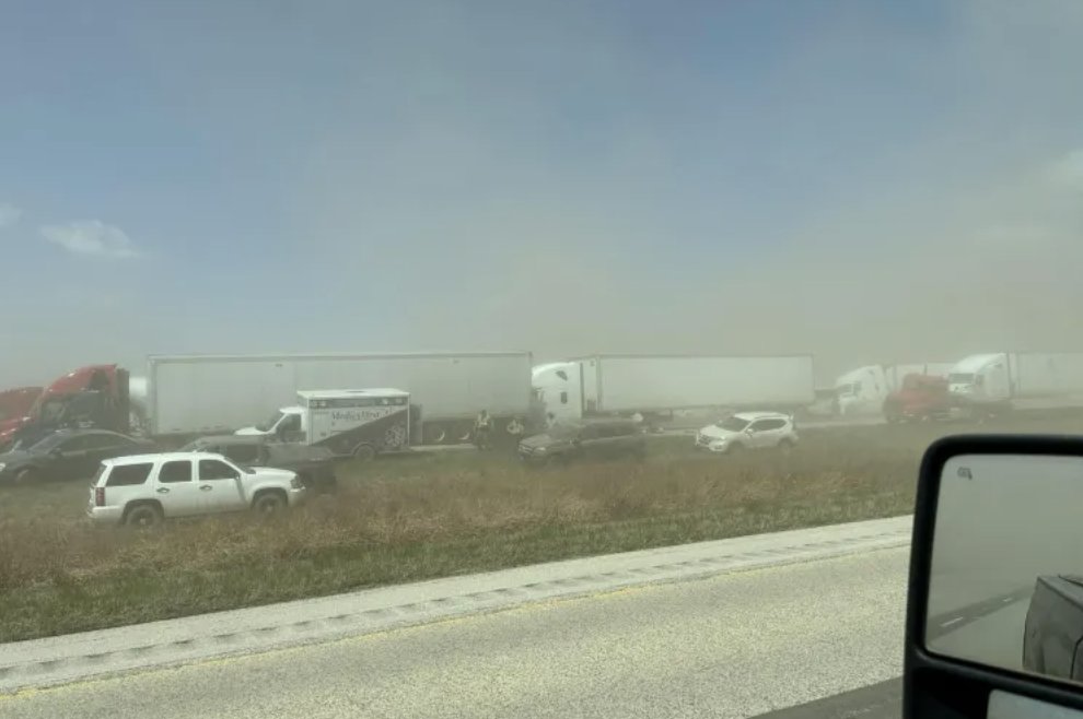 Massive pileup on I-55 south of Springfield, Illinois has closed the interstate for nearly 30 miles. Blowing dust off freshly plowed fields led to very low visibility#ilwx 🎥: Nathan Cormier pic.twitter.com/im7QLE8BTp