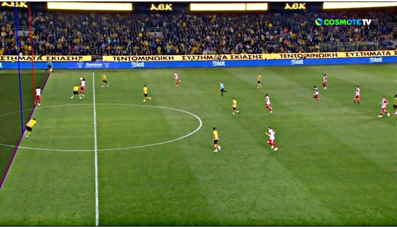 Στο 8ο λεπτό ο πρώτος βοηθός υπέδειξε οφσάιντ τον Σεντρίκ Μπακαμπου, σε μια φάση που δεν είδαμε ποτέ ριπλέι. Ο Αφρικανός φορ στην ζωντανή ροή φαίνεται να «καλύπτεται». Στο 45+2’ ο Μπριζάρ δεν έδωσε φάουλ υπέρ του Ιν-Μπεόμ Χουάνγκ σε πεντακάθαρο σπρώξιμο του Σιμάνσκι και άφησε την ΑΕΚ να βγάλει επικίνδυνη επίθεση.