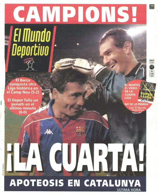 Η πρώτη φορά που σήκωσαν το τρόπαιο της Λα Λίγκα στις 14 Μαΐου ήταν τη σεζόν 1993/94. Ηταν από τα πιο δραματικά φινάλε στην ιστορία του πρωταθλήματος και συνέπεσε με τους τίτλους τέλους της Ντρημ Τιμ του Γιόχαν Κρόιφ.