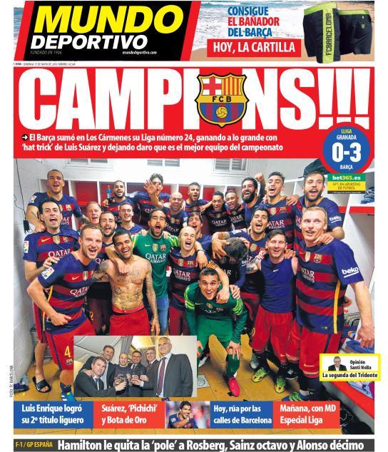14 Μαΐου διεξήχθη και η τελευταία αγωνιστική της σεζόν 2015/16. Μπάρτσα και Ρεάλ τις χώριζε μόλις ένας βαθμός. Οι Καταλανοί πήραν τη νίκη που χρειάζονταν στην έδρα της Γρανάδα (0-3) με χατ τρικ του Ουρουγουανού Λουίς Σουάρες κατακτώντας τον 24ο τίτλο τους στη Λα Λίγκα.