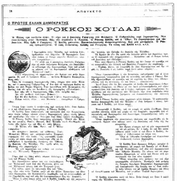 Τέτοια ήταν λοιπόν η κατάστασις προ πενήντα ετών, όταν εφάνηκε ο πιο αδιάλλακτος δημοκράτης, ο Ρόκκος Χοϊδάς.