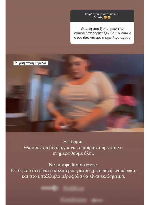 «Ξεκίνησα. Θα σας έχω βίντεο για να το μοιραστούμε και να ενημερωθούμε όλοι. Να μη φοβάσαι τίποτα» έγραψε η Δανάη Μπάρκα.