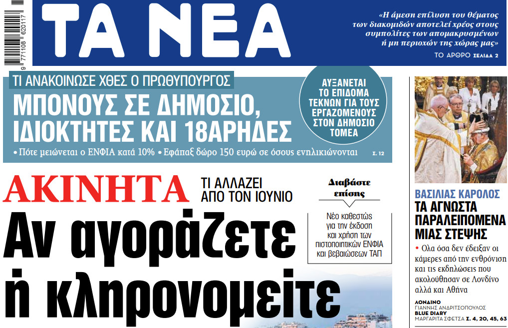• Πότε μειώνεται ο ΕΝΦΙΑ κατά 10% • Εφάπαξ δώρο 150 ευρώ σε όσους ενηλικιώνονται