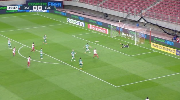 Ήταν η πιο μεγάλη ευκαιρία στο παιχνίδι, με τον Ολυμπιακό ν’ «αγγίζει» το γκολ.