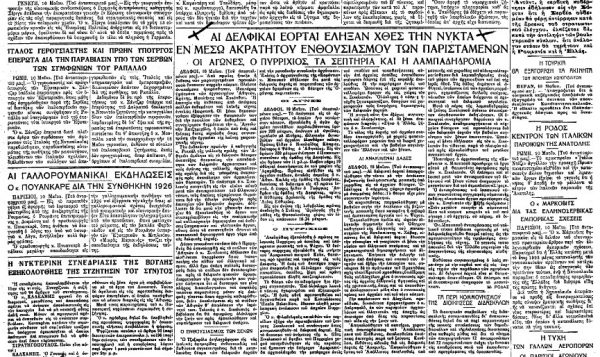 Η εφημερίδα «Ελεύθερον Βήμα», με καθημερινές αναφορές της, είχε φροντίσει για την όσο το δυνατόν καλύτερη παρουσίαση των πρώτων αυτών Δελφικών Εορτών, το Μάιο του 1927.