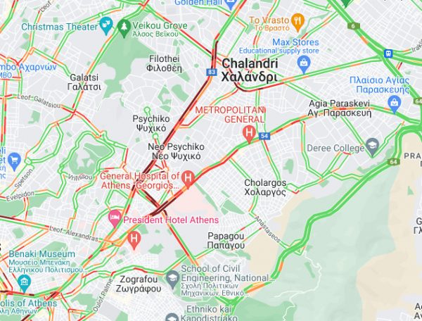 Σύμφωνα με την τελευταία ενημέρωση της Τροχαίας, αυξημένη είναι η κίνηση στην Αθηνών – Λαμίας από την Αθηνών έως τον κόμβο Καλυφτάκη στην έξοδο, στη λεωφόρο Μεσογείων, στη Βασιλίσσης Σοφίας και στα δύο ρεύματα, στην Καλλιρόης, τη Σταδίου, τη Φιλελλήνων και τη Λεωφόρο Ποσειδώνος στο ρεύμα προς Πειραιά από Αλίμου έως Καραϊσκάκη.