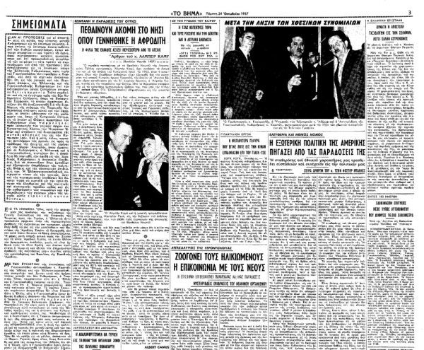 «ΤΟ ΒΗΜΑ», 24.10.1957, Ιστορικό Αρχείο «ΤΟ ΒΗΜΑ» & «ΤΑ ΝΕΑ»