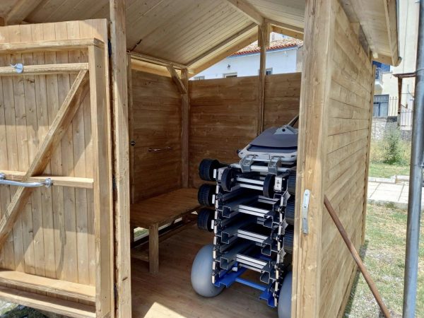 Ο μηχανισμός προσβασιμότητας, είναι ηλεκτρικός ηλιακά φορτιζόμενος, που μεταφέρει τα άτομα με κινητικές δυσκολίες από την ακτή στη θάλασσα για κολύμβηση.