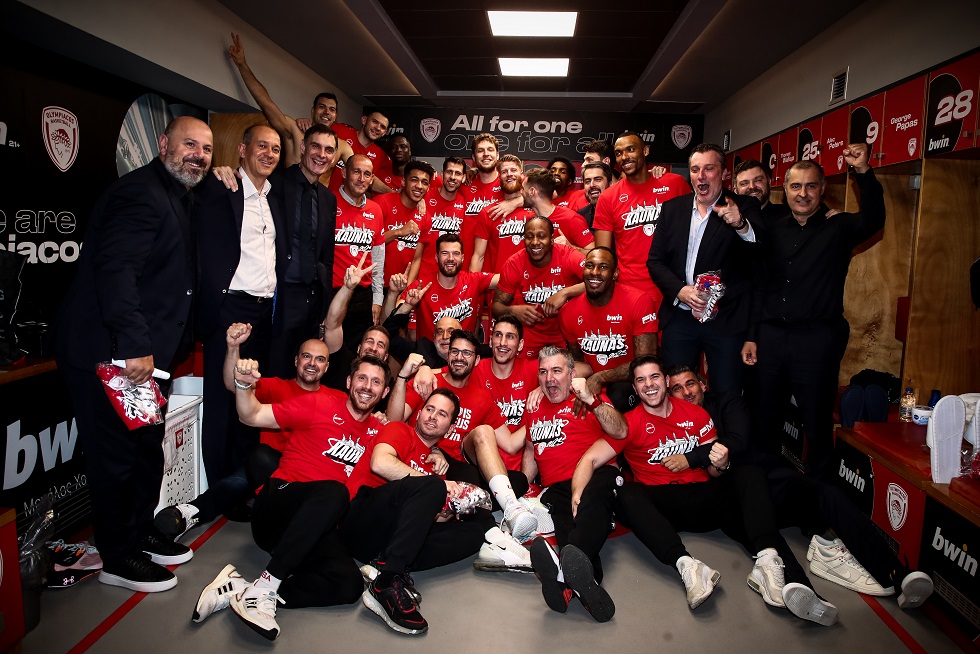 Οι ερυθρόλευκοι γιόρτασαν με την ψυχή τους την επιτυχία αυτή με την ερυθρόλευκη ΚΑΕ να δημοσιεύει μια φωτογραφία, με λεζάντα τη viral ατάκα του σχολιαστή της Euroleague από το game 3, μετά το νικητήριο τρίποντο του Κώστα Σλούκα: