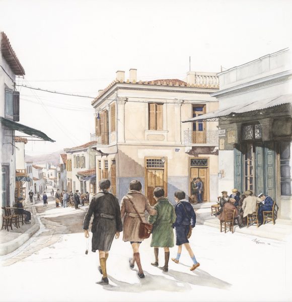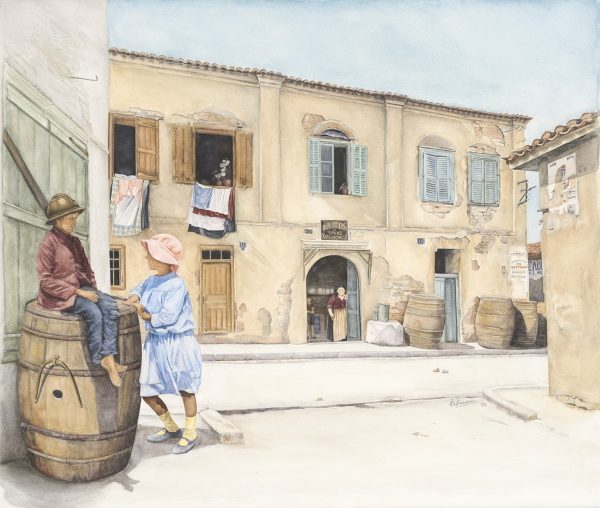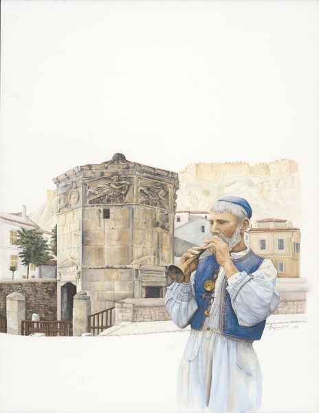 Αντικείμενα από τις συλλογές του Μουσείου συνδιαλέγονται με τις υδατογραφίες της εικαστικού Άρτεμης Χατζηγιαννάκη, με σκοπό να ζωντανέψουν πτυχές από την καθημερινότητα στο Βρυσάκι και την ευρύτερη περιοχή του, στα όρια της οποίας βρίσκονται τόσο το Λουτρό των Αέρηδων όσο και το Μουσείο Νεότερου Ελληνικού Πολιτισμού.