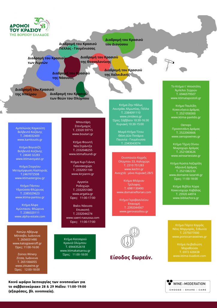 Πιο συγκεκριμένα, στις οκτώ οινικές διαδρομές των Δρόμων του Κρασιού της Βορείου Ελλάδος» θα έχουν ΑΝΟΙΧΤΕΣ ΠΟΡΤΕΣ τα οινοποιεία:
