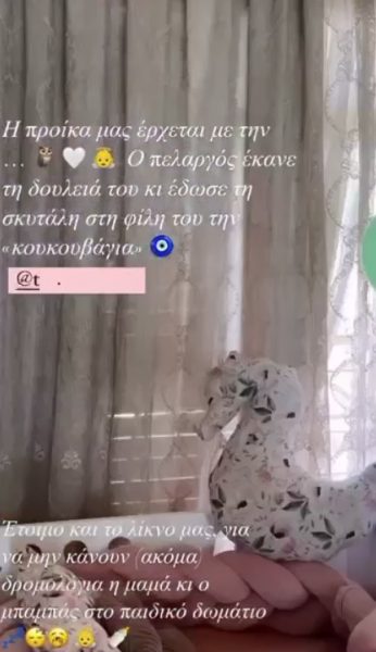 «Πέρα από τη συναισθηματική φόρτιση και τις ορμόνες που είναι στον Θεό, είμαι τόσο ήρεμη και ευτυχισμένη που δε μπορώ να πιστέψω ότι αυτό το πλασματάκι, που το κουβαλούσα τόσο καιρό και μας κράτησε όλο το χρόνο που εκείνη ήθελε, τελικά είναι στην αγκαλιά μας. Μόνο ευλογία», ανέφερε χαρακτηριστικά μετά τον ερχομό της κόρης της.
