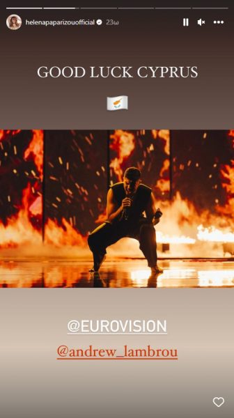 «Καλή επιτυχία» για Ελλάδα και Κύπρο έγραφε χαρακτηριστικά, αναρτώντας φωτογραφίες του Βίκτωρα Βερνίκου και του Andrew Lambrou από τις εμφανίσεις τους στη σκηνή της Eurovision.