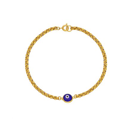 Είτε ψάχνετε βραχιόλι, είτε κολιέ, είτε σκουλαρίκια σίγουρα θα έχετε αμέτρητες επιλογές. Εμείς προτιμήσαμε κάτι διακριτικό και συγκεκριμένα ένα βραχιόλι από επίχρυσο ατσάλι με μπλε ματάκι από σμάλτο.
