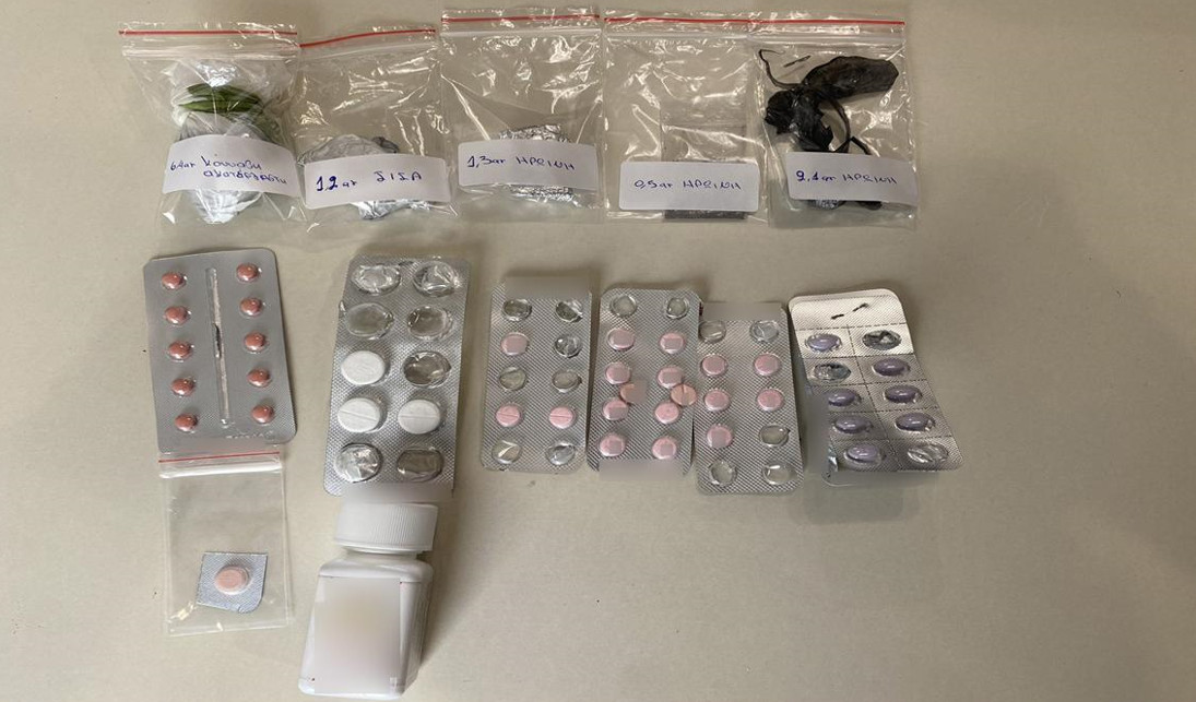 Ακολούθως, σε ελέγχους που πραγματοποιήθηκαν στους συλληφθέντες βρέθηκαν συνολικά στην κατοχή τους και κατασχέθηκαν, εκτός των προαναφερόμενων ναρκωτικών ουσιών, ηρωίνη, συνολικού μικτού βάρους 1,8 γραμμαρίων, ψευδή ιατρική συνταγή χορήγησης ψυχοτρόπων φαρμάκων, 56 δισκία χαπιών που εμπίπτουν στις διατάξεις του νόμου περί ναρκωτικών και θήκη καπνού με υπολείμματα κάνναβης αναμεμειγμένης με καπνό.