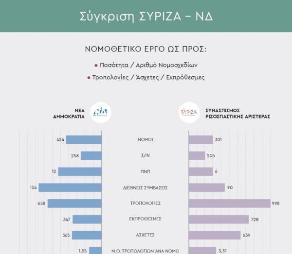Για τη προηγούμενη δε κυβέρνηση ΣΥΡΙΖΑ, από τις 998 τροπολογίες, οι 639 (64,02%) ήταν άσχετες και οι 728 (72,94%) ήταν εκπρόθεσμες.