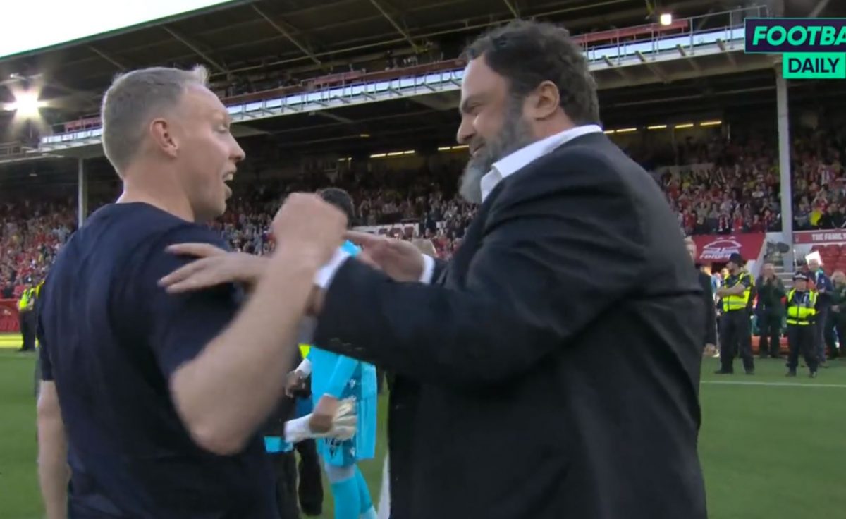 Με το σφύριγμα της λήξης στο «City Ground» ο Βαγγέλης Μαρινάκης έσπευσε να συγχαρεί τους πρωταγωνιστές για την παραμονή της Νότιγχαμ στην Premier League.