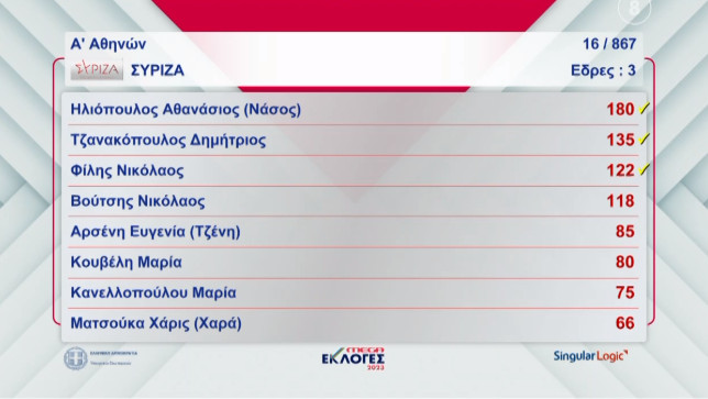 Στον ΣΥΡΙΖΑ-ΠΣ προηγούνται οι Νίκος Παππάς, Ραλλία Χρηστίδου, Θεανώ Φωτίου και Γιάννης Μουζάλας.