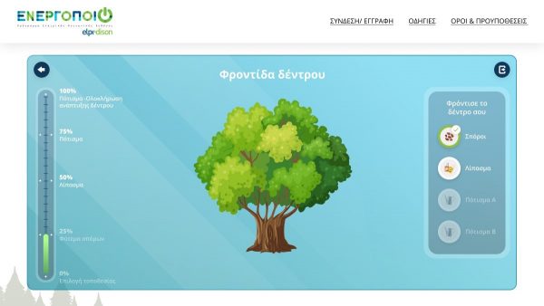 Μετά την ολοκλήρωση της ανάπτυξης ενός δέντρου, ο χρήστης μπορεί να υιοθετήσει και άλλο, ακολουθώντας τα ίδια βήματα και συνεισφέροντας επιπλέον δέντρα για την αναδάσωση της Βόρειας Εύβοιας! Παράλληλα, φροντίζοντας το δέντρο, λαμβάνει χρήσιμες πληροφορίες για τα δάση καθώς και έξυπνα tips ενεργειακής εξοικονόμησης που συμβάλλουν και αυτά στην προστασία του περιβάλλοντος.