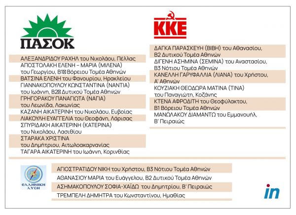 Ακολουθούν το ΠΑΣΟΚ με 10 γυναίκες, το ΚΚΕ με 6 και στην Ελληνική Λύση εξελέγησαν μόλις 4 γυναίκες
