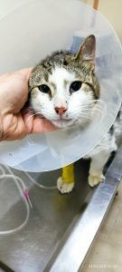 Μια αδέσποτη γατούλα που βρέθηκε με σπασμένο σαγόνι.