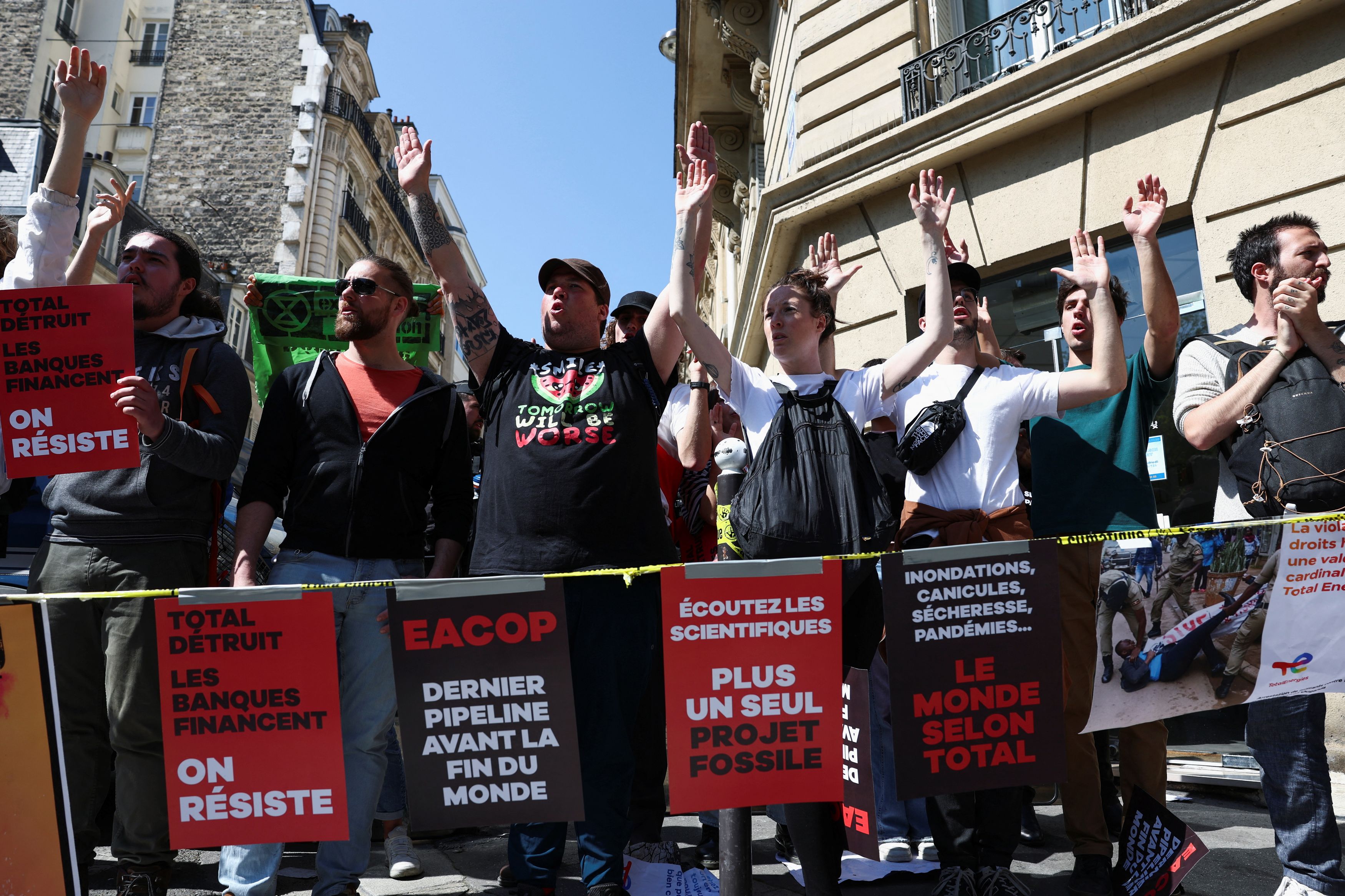 Δεκάδες ακτιβιστές απομακρύνθηκαν διά της βίας από τη συνέλευση της TotalEnergies (Reuters)