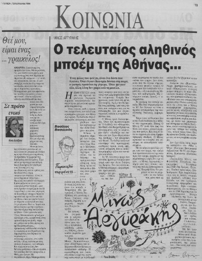 Όταν τα σκίτσα του Μίνου δημοσιεύονταν στην «Ελευθερία» του αξέχαστου Πάνου Κόκκα, αποτελούσαν «είδηση». Η αιμοκάθαρση που έκανε στο σάπιο νεφρό της «αστικής κοινωνίας», με τις εξωφρενικές «κυρίες» και τους «συζύγους» των, μας βοηθούσαν τότε να επιζήσουμε. Υπήρξε διαχρονικός, γιατί ήταν στη φύση του ποιητής. Άραγε δεν θα βρεθεί ένας εκδότης, από τους τόσους που υπάρχουν πια, για να ενδιαφερθεί για μια συγκεντρωτική έκδοση των σχεδόν απάντων του;