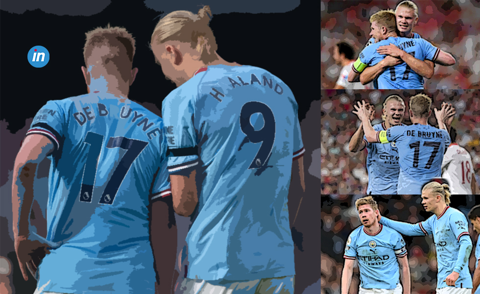 Εννοείτε πως και οι δύο κέρδισαν τους σχετικούς τίτλους «πρώτος σκόρερ, πρώτος σε ασίστ» του Αγγλικού πρωταθλήματος. Εννοείτε πως δεν εξάντλησαν την παραγωγή τους μόνο εκεί. Ο Χάαλαντ ως εδώ μετρά 52 γκολ και 9 ασίστ σε 51 ματς, ο Ντε Μπρόινε 28 ασίστ και 10 γκολ σε 47.