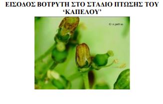 Από την εμφάνιση των ανθοταξιών (στ Ε, βλαστός 8-15 εκ.), στο στάδιο του μούρου (στάδιο Η) έως και το κλείσιμο των ραγών το αμπέλι είναι ιδιαίτερα ευαίσθητο σε μολύνσεις.