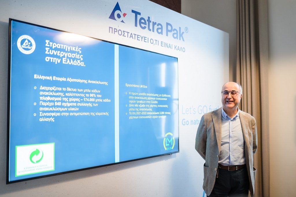 Σε συνάντηση με ελληνικά ΜΜΕ, ο κύριος Βασίλης Τσανός, Key Account Director της Tetra Pak, αναφέρθηκε στο όραμα της Tetra Pak, τη συμβολή στην κυκλική οικονομία και την πρωτοβουλία “Go Nature Go Carton”, για τη δημιουργία ακόμα πιο βιώσιμων, χάρτινων συσκευασιών. Οι συσκευασίες αυτές αποτελούνται από φυτικά υλικά, είναι πλήρως ανανεώσιμες, ανακυκλώσιμες και με ουδέτερο αποτύπωμα άνθρακα. Η Tetra Pak ενισχύει την ανακύκλωση καθώς δημιουργεί χάρτινες συσκευασίες σχεδιασμένες για να ανακυκλώνονται. Αποτελούνται από ανανεώσιμα υλικά, όπως το χαρτί, σε ποσοστό κατά μέσο όρο 70%, που προέρχεται από ξύλο από υπεύθυνα αναπτυσσόμενα δάση. Την προσήλωσή στην καινοτομία και τη δέσμευσή της Tetra Pak για χρήση 10% ανακυκλωμένου πλαστικού στις χάρτινες συσκευασίες της μέχρι το 2025, συμπληρώνει η εισαγωγή των μη αποσπώμενων καπακιών στις συσκευασίες, που μειώνουν τα απορρίμματα, καθώς ανακυκλώνονται μαζί με τη συσκευασία.