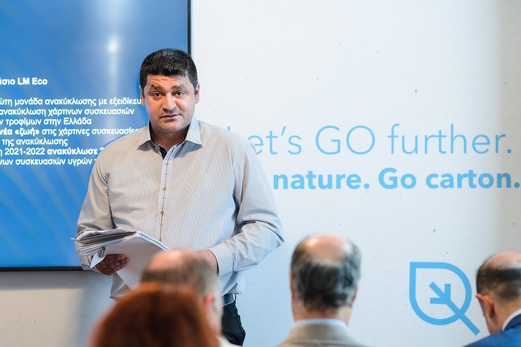 Το εργοστάσιο ανακύκλωσης της LM Eco, από την άλλη πλευρά, είναι η πρώτη μονάδα ανακύκλωσης με εξειδίκευση στην ανακύκλωση χάρτινων συσκευασιών υγρών τροφίμων στην Ελλάδα. Μέσω της ανακύκλωσης και της μετατροπής τους σε νέα υλικά και προϊόντα με πολλές εφαρμογές στην καθημερινότητα, η LM Eco δίνει νέα «ζωή» στις χάρτινες συσκευασίες. «Η LM ECO ανακυκλώνει το 100% των συσκευασιών που παραλαμβάνεται από τα Κέντρα Διαλογής. Το 2021 και το 2022 ανακυκλώθηκαν 2.200 τόνοι χάρτινων συσκευασιών υγρών τροφίμων», δήλωσε ο κύριος Πουρδαλάς, ιδιοκτήτης του Εργοστασίου.