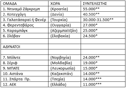 Αυτοί είναι οι αντίπαλοι της ΑΕΚ