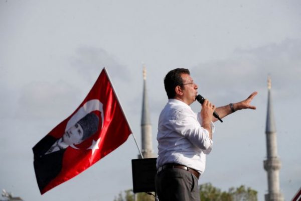 Ο Εκρέμ Ιμάμογλου μιλάει σε προεκλογική συγκέντρωση στην Κωνσταντινούπολη (φωτογραφία Reuters/Dilara Senkaya)