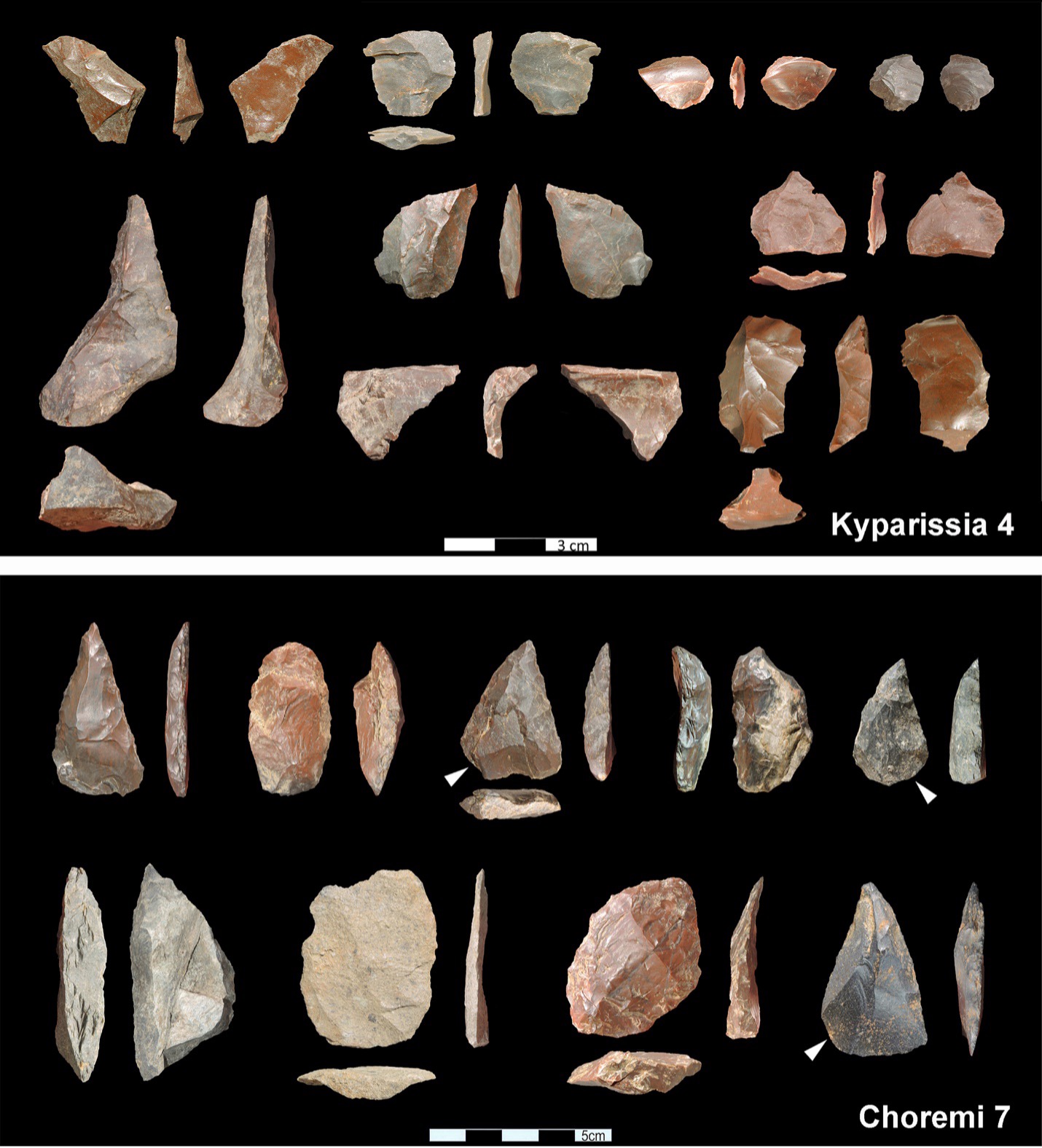 Η στρωματογραφικά νεότερη, κοντινή θέση Κυπαρίσσια 3 απέδωσε κυρίως οστά ελεφάντων που σχετίζονται με λίθινα εργαλεία. Στη θέση Μαραθούσα 2 που χρονολογείται περίπου στα 450 χιλιάδες χρόνια πριν, βρέθηκε τμήμα σκελετού ιπποποτάμου με ίχνη κοπής σε συνδυασμό με υπολείμματα λίθινων εργαλείων, και αποτελεί ένα σπάνιο παράδειγμα εκμετάλλευσης ιπποποτάμου στην Ευρώπη του Πλειστόκαινου.