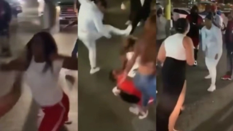 Αυτό που αρχικά ήταν μια αντιπαράθεση ένας εναντίον ενός μετατράπηκε σε ένα θέαμα σπρωξίματος, τραβήγματος μαλλιών και μανιασμένων γροθιών, καθώς ο κόσμος μπλέχτηκε στη διαμάχη.