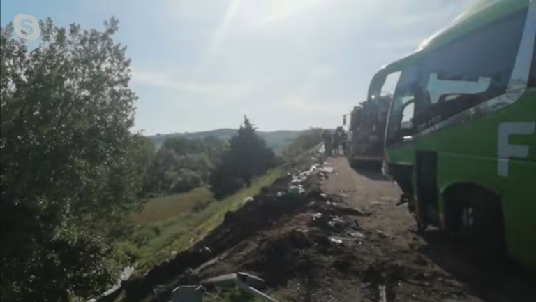 Το ατύχημα συνέβη όταν το λεωφορείο της Flixbus βρέθηκε αντιμέτωπο με δύο ακινητοποιημένα αυτοκίνητα λόγω σύγκρουσης. Ο οδηγός του λεωφορείου έστριψε προς τα αριστερά, κατευθυνόμενος προς το προστατευτικό κιγκλίδωμα, για να αποφύγει τη σύγκρουση, αλλά κατέληξε στην πλαγιά, η οποία, ευτυχώς, δεν είναι ιδιαίτερα βαθιά.