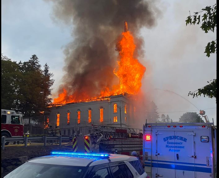 Παρανάλωμα του πυρός έγινε μία εκκλησία 280 ετών στη Μασαχουσέτη πιθανότατα από χτύπημα κεραυνού.