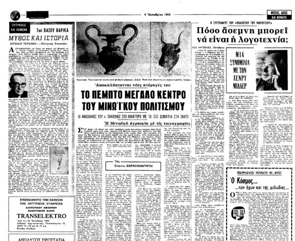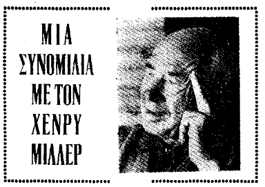 *Άρθρο-συνομιλία με τον Χένρι Μίλερ, που έφερε τον τίτλο «Πόσο άσεμνη μπορεί να είναι η λογοτεχνία;» και είχε δημοσιευτεί στην εφημερίδα «Το Βήμα» στις 4 Οκτωβρίου 1964.