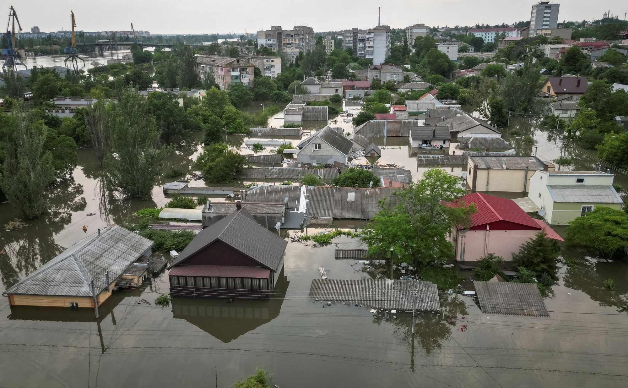 Δύο ημέρες μετά την ανατίναξη του φράγματος στη Χερσώνα, η στάθμη του νερού συνεχίζει να ανεβαίνει, με τα νερά να φτάνουν πάνω από το ύψος του κεφαλιού, πλημμυρίζοντας τα σπίτια των κατοίκων. Ήδη έχουν αναφερθεί τρεις θάνατοι. Από την άλλη, οι διασώστες καταβάλλουν τεράστια μάχη για να απομακρύνουν τους κατοίκους από τα λασπώδη νερά που πλέον φτάνουν ακόμα και στις στέγες των σπιτιών.
