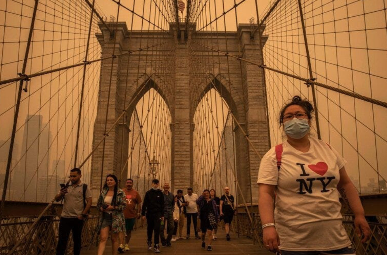 Δεκάδες φωτογραφίες με την Νέα Υόρκη να έχει σκεπαστεί από πυκνό καπνό και τους κατοίκους να φορούν μάσκα έχουν κατακλύσει τα μέσα κοινωνικής δικτύωσης.