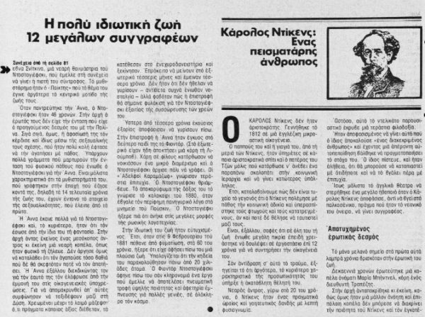 *Κείμενο αφιερωμένο στον Κάρολο Ντίκενς, που έφερε τον τίτλο «Κάρολος Ντίκενς: Ένας πεισματάρης άνθρωπος» και είχε δημοσιευτεί στον «Ταχυδρόμο» στις 4 Οκτωβρίου 1979.