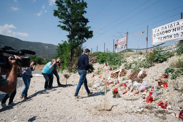 Προηγουμένως, ο Νίκος Ανδρουλάκης απέτισε φόρο τιμής στα θύματα του σιδηροδρομικού δυστυχήματος στα Τέμπη αφήνοντας λίγα λουλούδια στο σημείο της τραγωδίας.